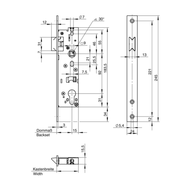 Einsteck-Fallenschloss für Rauch- und Brandschutztüren