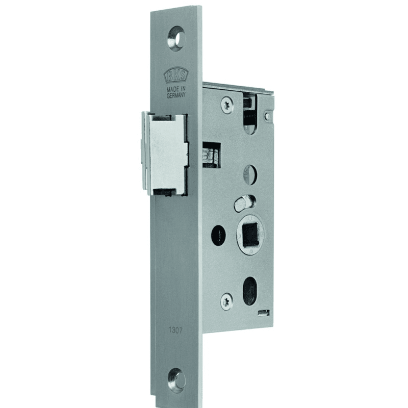 BKS Fallen-Einsteckschloss B 1307; Produkttyp: Fallen-Einsteckschloss; Produkttyp (Hersteller): Einsteckfallenschloss; Verriegelung: manuell; Drückernuss: einteilig; Stulpform: Flachstulp; Material St