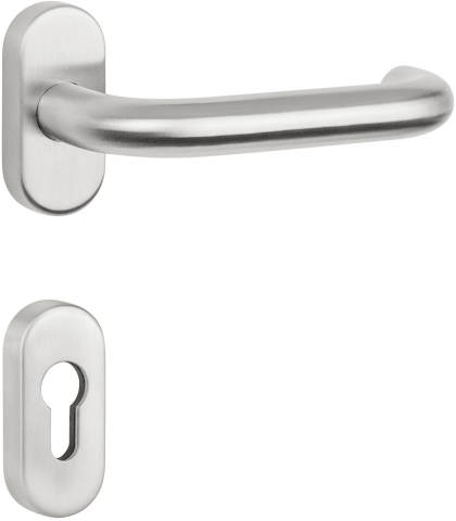 RR-FH-Drückergarnitur 1801 / 20 mm Ø BASIC 01, mit Rosette 2085 fest/drehbar, Ausf.: PZ mit Cliprosette 2085 PZ, inkl. Vk für TS 40-90, ohne Befestigungsschrauben, Oberfl. 60 (Edelstahl matt)