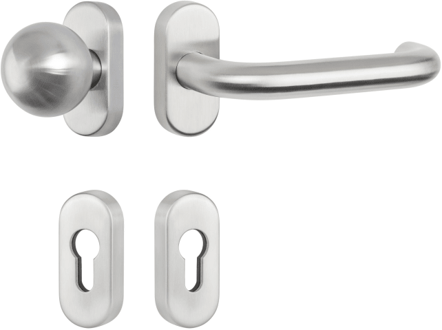 RR-FH-Wechselgarnitur 1801 / 20 mm Ø BASIC 01, mit Rosette 2085 fest/drehbar, Ausf.: PZW, Knopf 3126, Cliprosette 2085 PZ, inkl. Vk für TS 65-88, ohne Befestigungsschrauben, Oberfl. 60 (Edelstahl matt