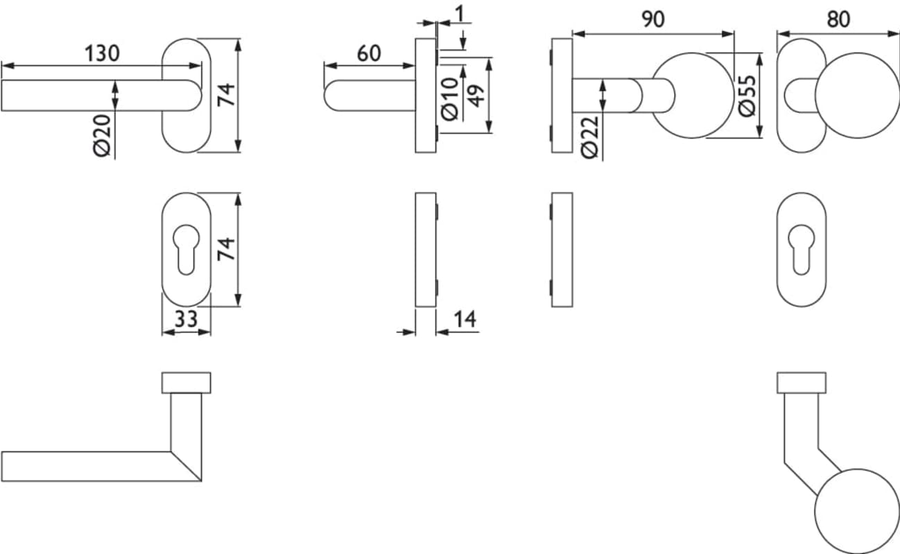RR-FH-Wechselgarnitur 1802 / 20 mm Ø BASIC 02, mit Rosette 2085 fest/drehbar, Ausf.: PZW, Knopf 3126 gk, Cliprosette 2085 PZ, inkl. Vk für TS 65-88, ohne Befestigungsschrauben, Oberfl. 60 (Edelstahl m