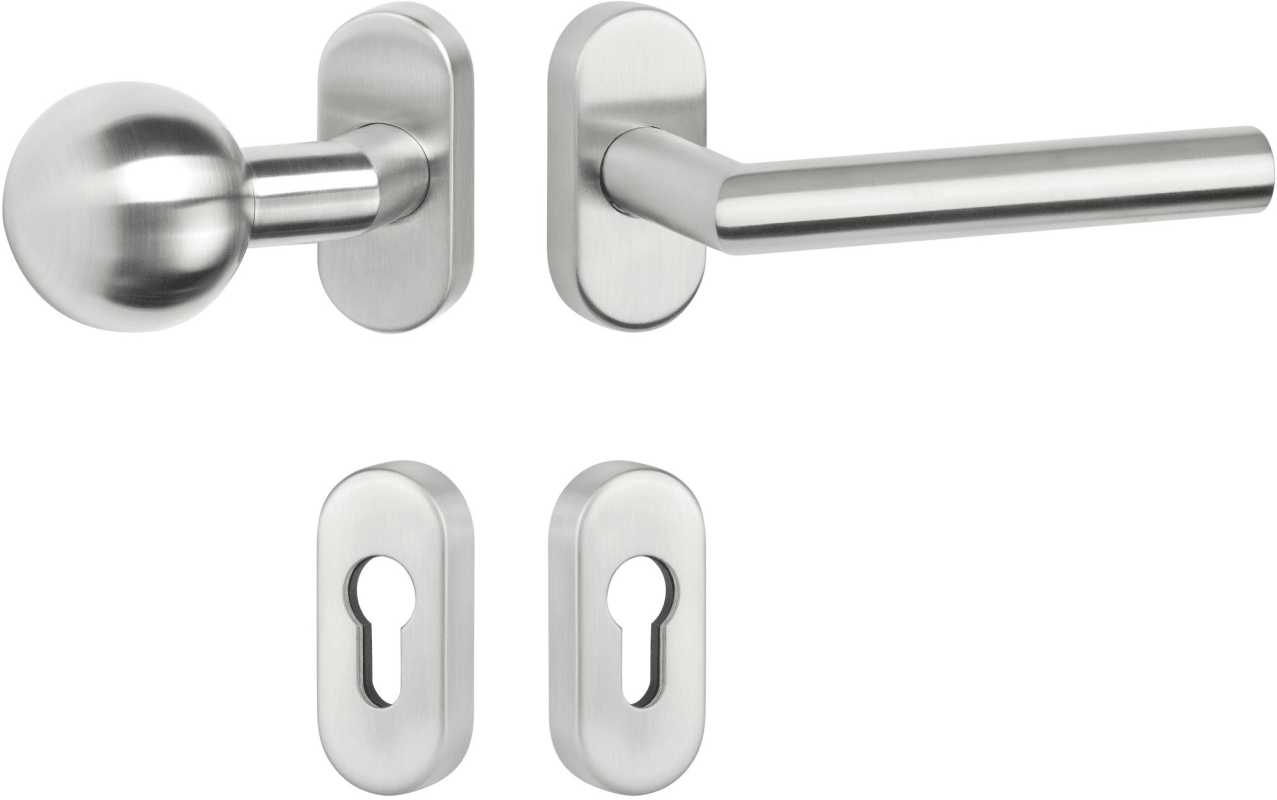 RR-FH-Wechselgarnitur 1802 / 20 mm Ø BASIC 02, mit Rosette 2085 fest/drehbar, Ausf.: PZW, Knopf 3126 gk, Cliprosette 2085 PZ, inkl. Vk für TS 65-88, ohne Befestigungsschrauben, Oberfl. 60 (Edelstahl matt)