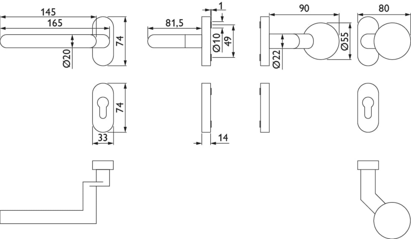 RR-FH-Wechselgarnitur 1802 gk / 20 mm Ø BASIC 02, mit Rosette 2085 fest/drehbar, Ausf.: PZW, Knopf 3126 gk, Cliprosette 2085 PZ, inkl. Vk für TS 80-88, ohne Befestigungsschrauben, Oberfl. 60 (Edelstah