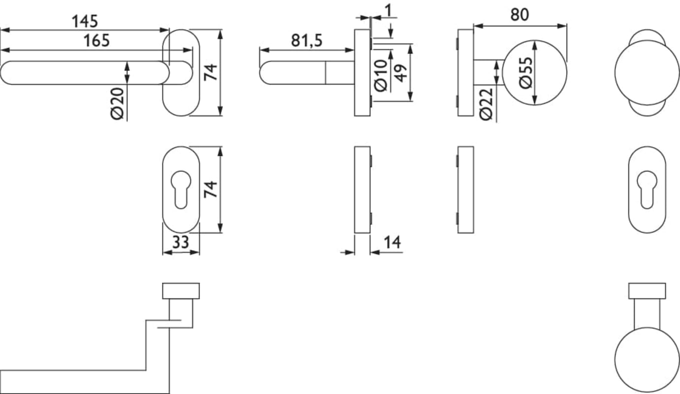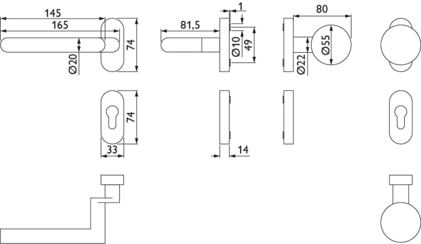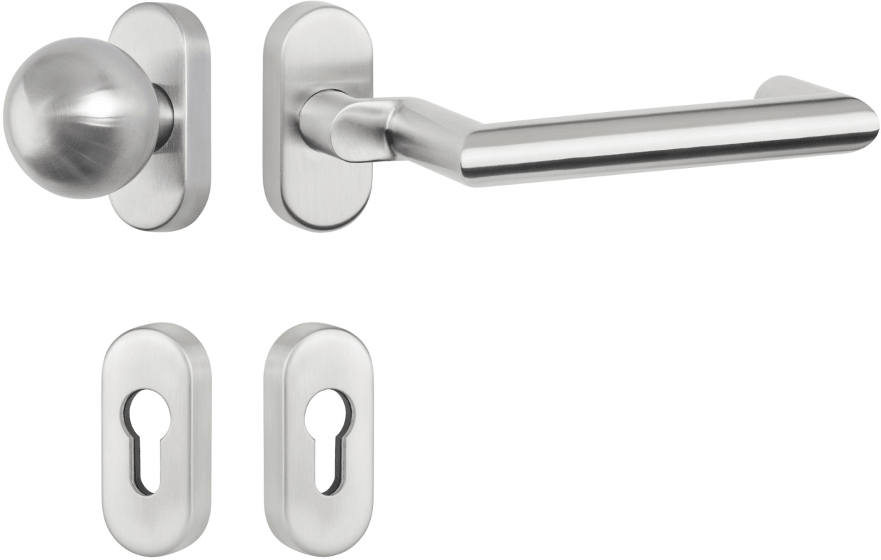 RR-FH-Wechselgarnitur 1808 gk / 20 mm Ø BASIC 08, mit Rosette 2085 fest/drehbar, Ausf.: PZW, Knopf 3126, Cliprosette 2085 PZ, inkl. Vk für TS 80-88, ohne Befestigungsschrauben, Oberfl. 60 (Edelstahl m