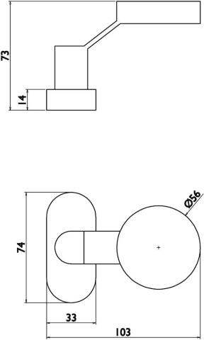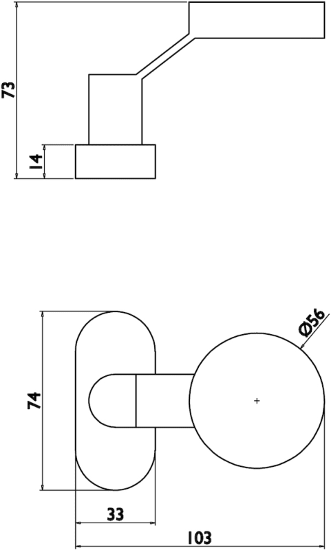 RR-Flachknopf 3129 gk, fest auf Rosette 2085, mit M12 Innengewinde für Wechselstift, ohne Stift und Schrauben, Oberfl. 60 (Edelstahl matt)