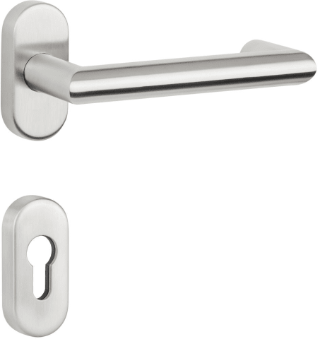 RR-KL4-Drückergarnitur 1808 / 20 mm Ø BASIC 08, mit Rosette 2085 fest/drehbar mit Rückholfeder, Ausf.: PZ mit Cliprosette 2085 PZ, inkl. Vk für TS 40-90, ohne Befestigungsschrauben, Oberfl. 60 (Edelstahl matt)
