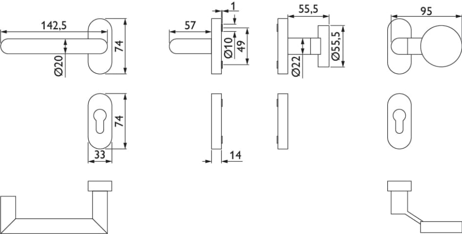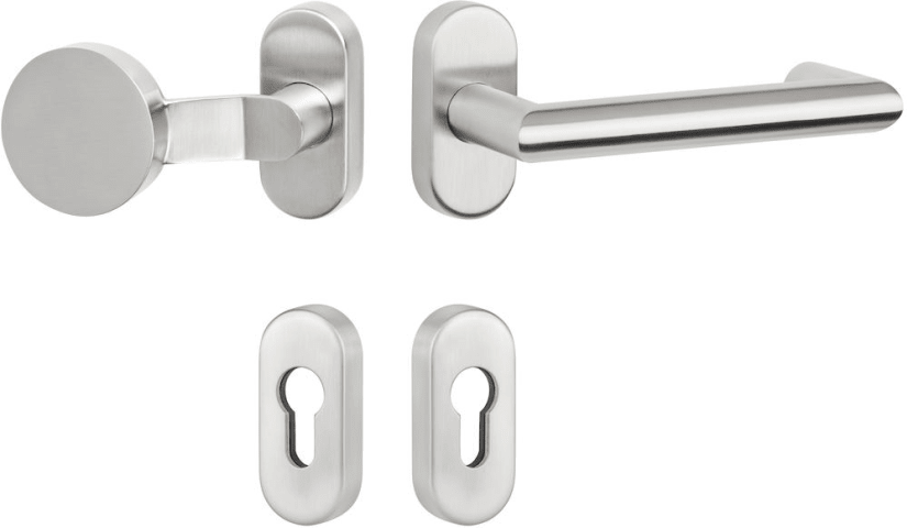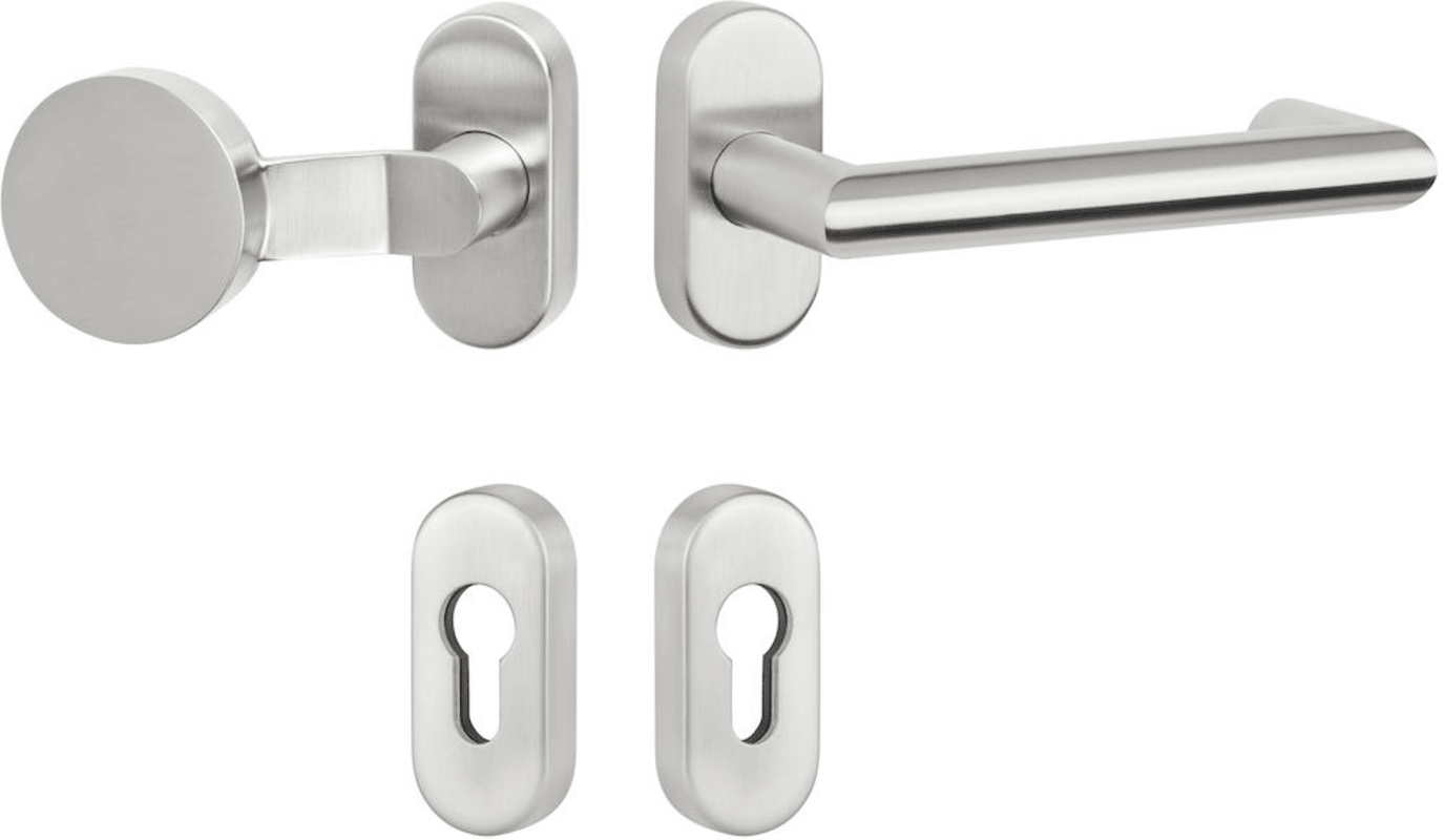 RR-KL4-Wechselgarnitur 1808 / 20 mm Ø BASIC 08, mit Rosette 2085 fest/drehbar mit Rückholfeder, Ausf.: PZW, Knopf 3129 gk, Cliprosette 2085 PZ, inkl. Vk für TS 65-88, ohne Befestigungsschrauben, Oberf