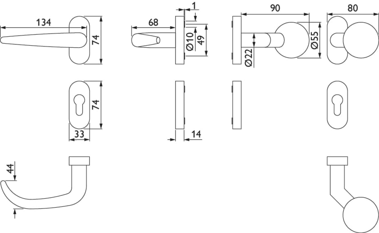 RR-KL4-Wechselgarnitur 1816 BASIC 16, mit Rosette 2085 fest/drehbar mit Rückholfeder, Ausf.: PZW, Knopf 3126 gk, Cliprosette 2085 PZ, inkl. Vk für TS 65-88, ohne Befestigungsschrauben, Oberfl. 60 (Ede