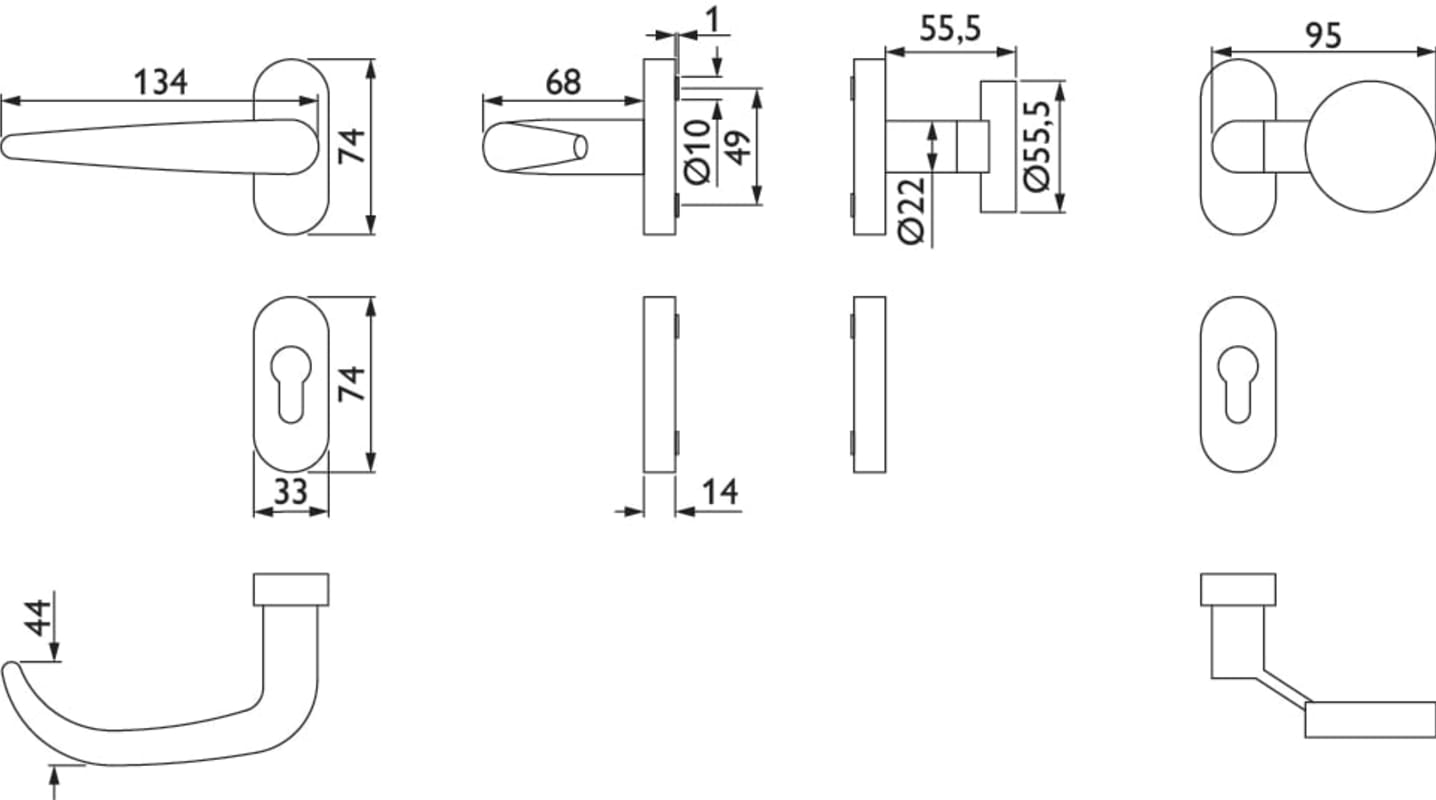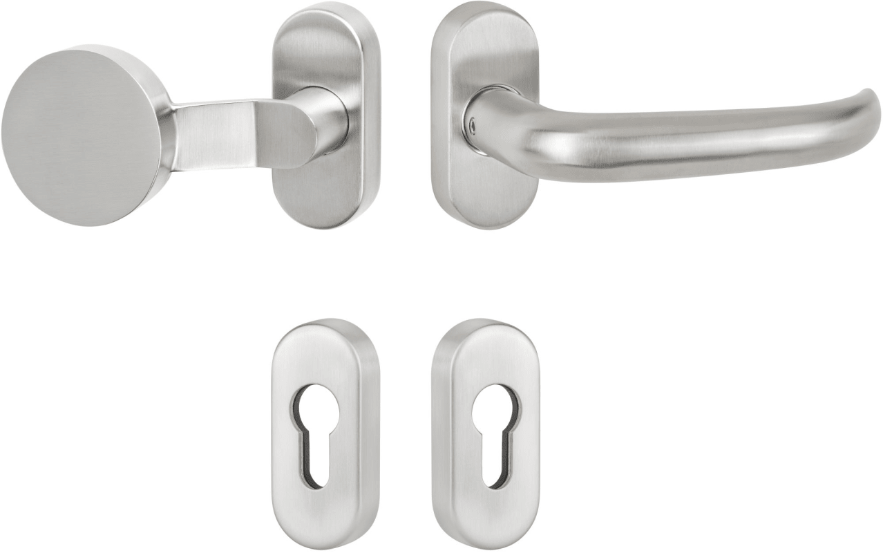 RR-KL4-Wechselgarnitur 1816 BASIC 16, mit Rosette 2085 fest/drehbar mit Rückholfeder, Ausf.: PZW, Knopf 3129 gk, Cliprosette 2085 PZ, inkl. Vk für TS 65-88, ohne Befestigungsschrauben, Oberfl. 60 (Ede