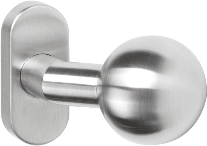 RR-Kugelknopf 3126 gk, mit Rosette 2085 fest/drehbar mit Rückholfeder, beidseitig verwendbar mit Doppelfeder-System, 8 mm Vierkant, ohne Stift und Schrauben, Oberfl. 60 (Edelstahl matt)