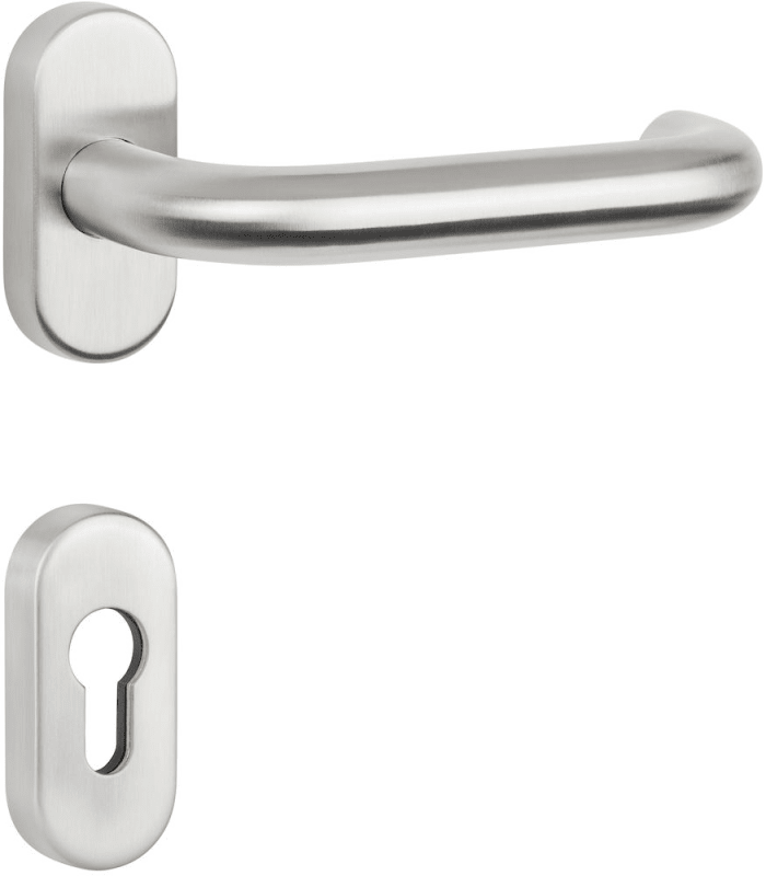 RR-Panik-Drückergarnitur 1801 / 20 mm Ø BASIC 01, mit Rosette 2085 fest/drehbar ohne Hochhaltefeder, Ausf.: PZ mit Cliprosette 2085 PZ, inkl. Vk für TS 35-85, ohne Befestigungsschrauben, Oberfl. 60 (Edelstahl matt)