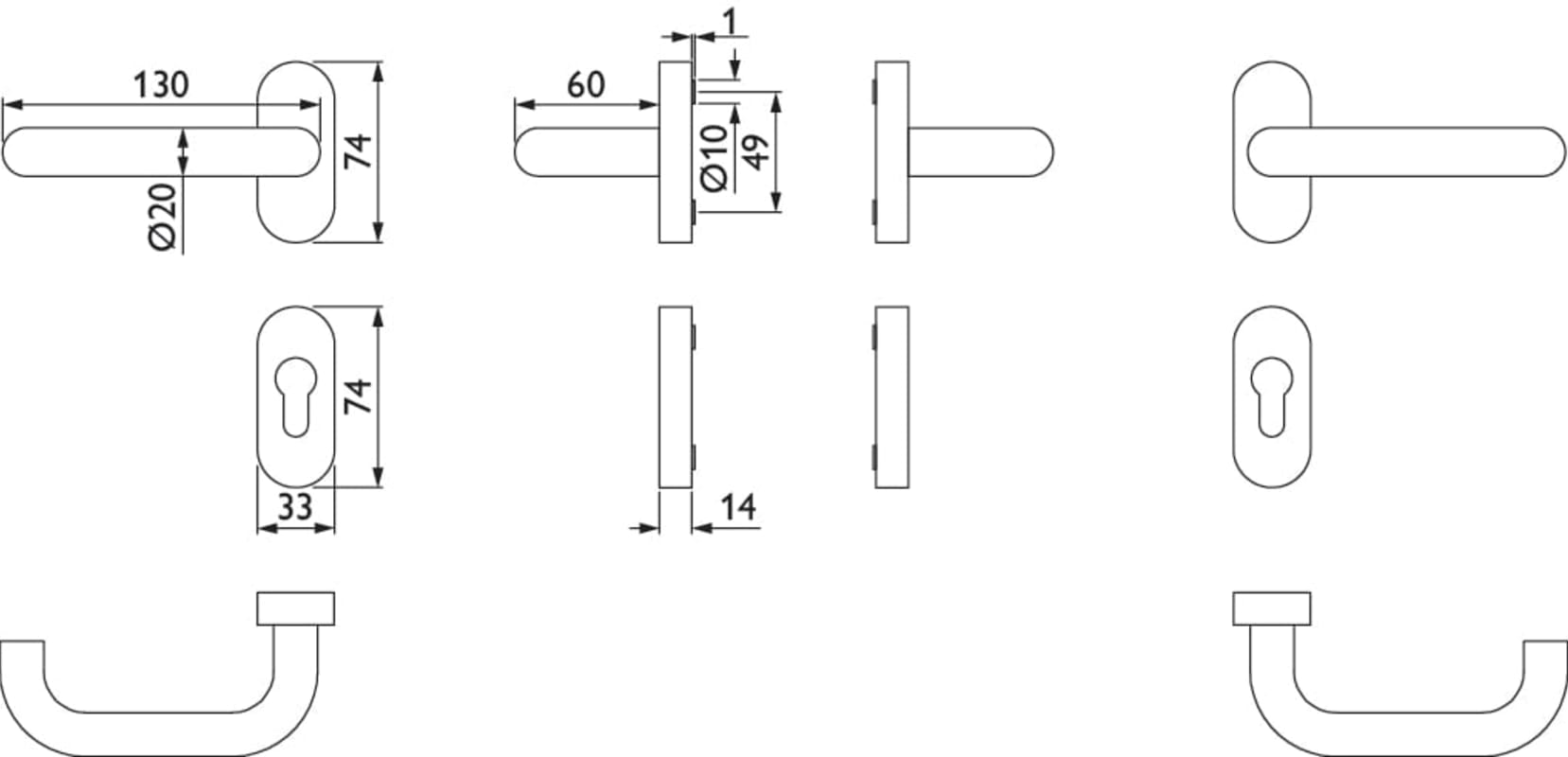 Hermat PA Drückergarnitur 1801/2085.AP,Ros.,ov.,PZ,9,ER,TS 35-85,o.No.