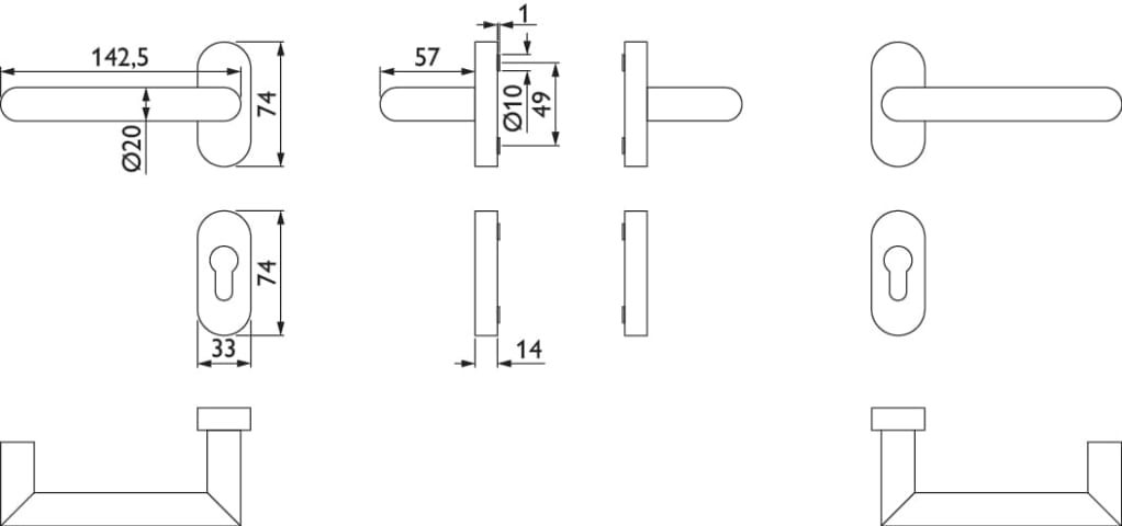 Hermat PA Drückergarnitur 1808/2085.AP,Ros.,ov.,PZ,9,ER,TS 35-85,o.No.