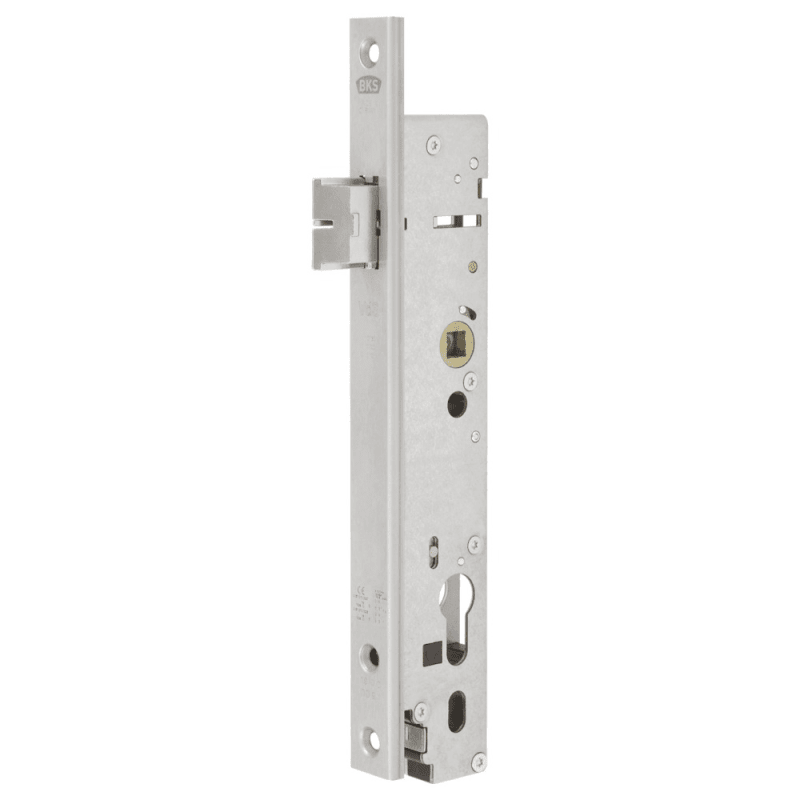 BKS Panik-Fallen-Einsteckschloss B-19700; Produkttyp: Panik-Fallen-Einsteckschloss; Produkttyp (Hersteller): Panikschloss; Verriegelung: selbstverriegelnd (automatisch); Drückernuss: geteilte Nuss; Stulpform: U-Stulp; Material Stulp: Edelstahl; Schlosskastenhöhe: 240,5 mm; Schlosskastenstärke: 16 mm; Norm: DIN 18250,DIN EN 1125,VdS (Schadenverhütung),DIN EN 179; Zulassung: für Rauchschutz,für Feuerschutz,für Fluchttüren; Türart: Rohrrahmen; Türflügelanzahl: einflügelig; Türwerkstoff: Stahl,Aluminium; Dornmaß: 34 mm; Drückernussvierkant: 9 mm; Entfernung: 94 mm; Lochung: Schweizer Rundzylinder gelocht; DIN-Richtung: DIN Links-Rechts; Öffnungsrichtung: nach innen öffnend/nach außen öffnend; Stulpausführung: kantig; Stulphöhe (U-Stulp): 6 mm; Stulpbreite: 24 mm; Stulplänge: 268 mm; Stulpstärke: 2 mm; Farbton Stulp: edelstahl; Oberfläche Stulp: matt; Fallenausschluss: 20 mm; Einbautiefe Schlosskasten: 49,3 mm; Wechsel: mit Wechsel