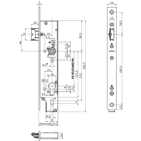 BKS Panik-Fallen-Einsteckschloss B-19700; Produkttyp: Panik-Fallen-Einsteckschloss; Produkttyp (Hersteller): Panikschloss; Verriegelung: selbstverriegelnd (automatisch); Drückernuss: geteilte Nuss; Stulpform: U-Stulp; Material Stulp: Edelstahl; Schlosskastenhöhe: 240,5 mm; Schlosskastenstärke: 16 mm; Norm: DIN 18250,DIN EN 1125,VdS (Schadenverhütung),DIN EN 179; Zulassung: für Rauchschutz,für Feuerschutz,für Fluchttüren; Türart: Rohrrahmen; Türflügelanzahl: einflügelig; Türwerkstoff: Stahl,Aluminium; Dornmaß: 44 mm; Drückernussvierkant: 9 mm; Entfernung: 92 mm; Lochung: Profilzylinder gelocht; DIN-Richtung: DIN Links-Rechts; Öffnungsrichtung: nach innen öffnend/nach außen öffnend; Stulpausführung: kantig; Stulphöhe (U-Stulp): 6 mm; Stulpbreite: 24 mm; Stulplänge: 268 mm; Stulpstärke: 2 mm; Farbton Stulp: edelstahl; Oberfläche Stulp: matt; Fallenausschluss: 20 mm; Einbautiefe Schlosskasten: 59,3 mm; Wechsel: mit Wechsel