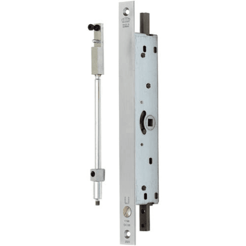 BKS Umlenkschloss B 1798; Produkttyp: Umlenkschloss; Produkttyp (Hersteller): Umlenkschloss; Einsatzbereich: für Treibriegelstange; Drückernuss: einteilig; Stulpform: Flachstulp; Material Stulp: Edelstahl; Schlosskasten: geschlossen; Schlosskastenhöhe: 210 mm; Schlosskastenstärke: 18 mm; Türart: Rohrrahmen; Türflügelanzahl: zweiflügelig; Türwerkstoff: Aluminium,Stahl; Dornmaß: 45 mm; Hinterdornmaß: 15 mm; Drückernussvierkant: 9 mm; DIN-Richtung: DIN Links-Rechts; Stulpausführung: kantig; Stulpbreite: 24 mm; Stulplänge: 295 mm; Stulpstärke: 3 mm; Farbton Stulp: edelstahl; Oberfläche Stulp: matt; Zusatzfunktion-/Ausstattung: mit Pendel-Regulierkupplung; Einbautiefe Schlosskasten: 57 mm; Zusatzinformation: mit 40° Drehweg