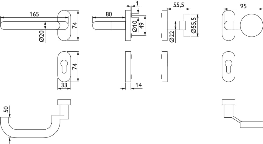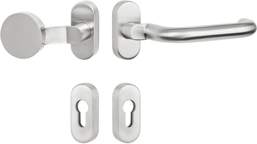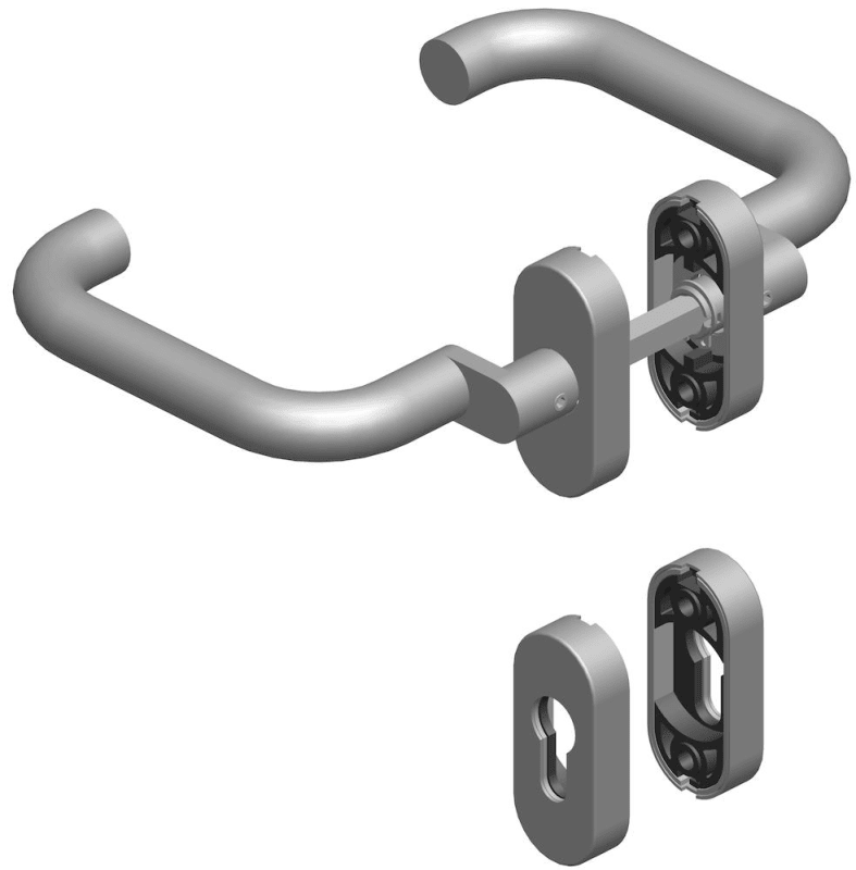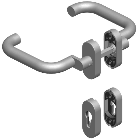 RR-Wechselgarnitur 1801 gk / 20 mm Ø BASIC 01, mit Rosette 2085 fest/drehbar mit Rückholfeder, Ausf.: PZW, Knopf 3129 gk, Cliprosette 2085 PZ, inkl. Vk für TS 80-88, ohne Befestigungsschrauben, Oberfl