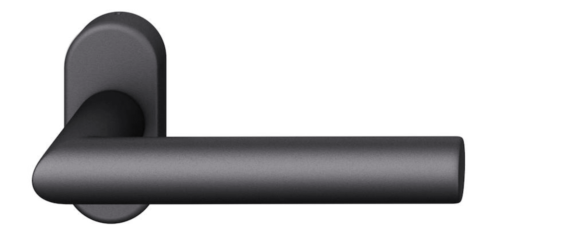 FSB Halbgarnitur 09 1076; Produkttyp: Halbgarnitur; Produkttyp (Hersteller): Drückerlochteil; Ausführung: ohne Schlüsselrosette; Befestigungsart Drückerrosette (innen): verdeckt verschraubt; Befestigungstechnik: ohne Stütznocken; Montageart: aufliegend; Form Drückerrosette: oval; Vierkant: 8 mm; Material: Aluminium; Form Türgriff (innen): L-Form; Durchmesser Türgriff (innen): 21 mm; Länge Türgriff (innen): 141 mm; Höhe Türgriff (innen): 58 mm; Breite Drückerrosette (innen): 32,5 mm; Länge Drückerrosette (innen): 70 mm; Höhe Drückerrosette (innen): 14 mm; Lagerung: Ausgleichslager®,mit Rückholfeder,festdrehbar; Einsatzbereich: Haustür; Türart: Rohrrahmen; Türwerkstoff: Aluminium,Kunststoff; Anwendung: innen; DIN-Richtung: DIN Links-Rechts; Farbe: schwarz; Oberfläche: eloxiert,gestrahlt; Ausführung Vierkant: Stabilstift; Norm: DIN EN 1906