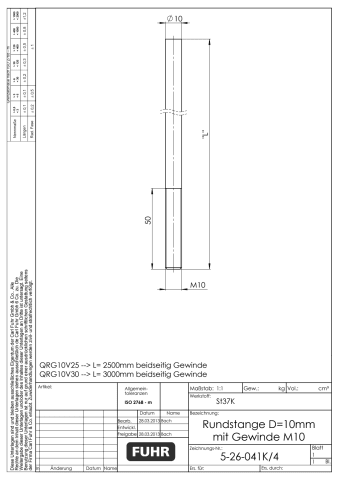 FUHR Treibriegelstange; Produkttyp: Treibriegelstange; Produkttyp (Hersteller): Rundstange; Ausführung: massiv; Verriegelung: oben/unten; Einsatzbereich: für Türtreibriegel; Form: rund; Material: Stah