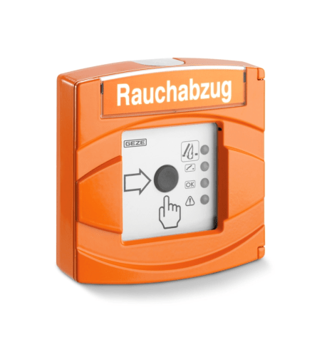 GEZE Feuertaster FT 4 A; Befestigungsart: zum Anschrauben; Montageart: Aufputz; Funktion: Rastfunktion; Einsatzbereich: Rauchwärmeabzug; Basis: Feuertaster; Ausführung: im Gehäuse,mit Sichtscheibe; Gehäusematerial: Aluminiumdruckguss; Gehäusefarbe: orange; Breite: 126 mm; Höhe: 126 mm; Tiefe: 32 mm; Nennspannung: 24 V; Norm: VdS; Zusatzinformation: Reset-Taste zum zurücksetzen des Alarms; Stromart: DC; Sichtanzeige: Alarm,auf/zu,BETRIEB (LED grün),Störung; RAL Farbton: RAL 2011