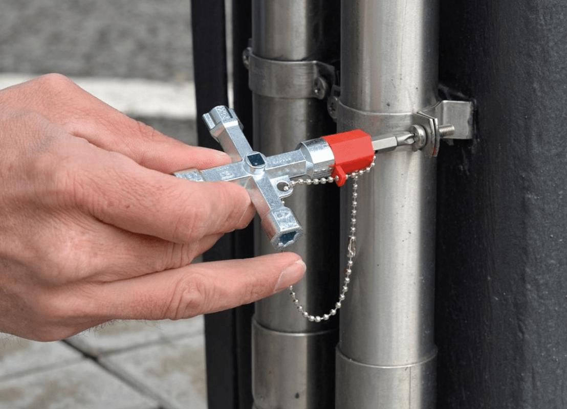 Schaltschrank-Schlüssel DoubleHead• Zink-Druckguss • Außen-6-kant 7 mm • Doppelbit Schlitz 1 x 7 mm und PH 2 • Heizkörperventil-Schlüssel 5 mm • Außen-4-kant 6, 7; 8 mm • Außen-3-kant 7; 8; 9 mm