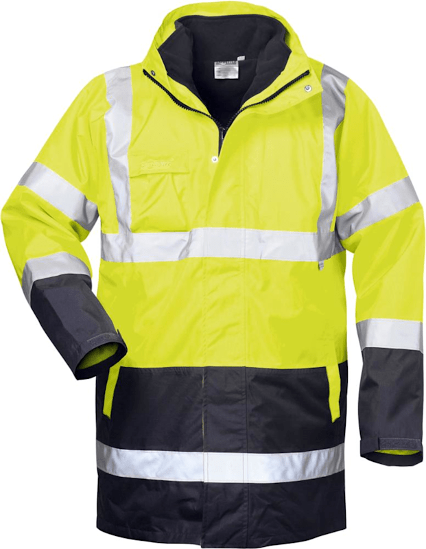 Zulassung/Norm: EN ISO 20471, Klasse 3 (Innenjacke separat Klasse 2, Innenweste separat Klasse 2), EN 14058 Klasse 1, EN ISO 13688 und EN 343 Klasse 3/1 (Außenjacke separat Klasse 3/3)