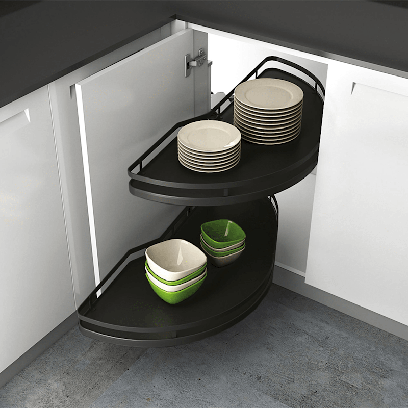 • Schwenkauszug zum Einbau hinter Drehtür• Ermöglicht bequemen Zugriff auf das Staugut• Für Eckmöbel mit Frontbreite 400, 450, 500 oder 600 mm• Tablare einzeln herausschwenkbar und höhenverstellba