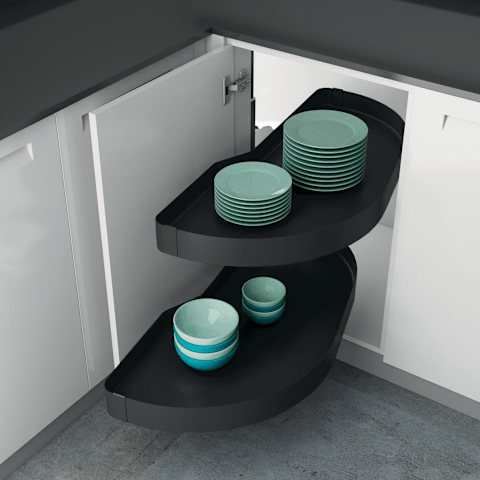 • Schwenkauszug zum Einbau hinter Drehtür• Ermöglicht bequemen Zugriff auf das Staugut• Für Eckmöbel mit Frontbreite 400, 450 / 500 oder 600 mm• Tablare einzeln herausschwenkbar und höhenverstellb