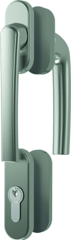 ROTO Griffgarnitur Roto Samba; Ausführung: mit Rosetten,abschließbar; Material: Aluminium; Vierkant: 7 mm; Rastung: 90°; Befestigungsart: verdeckt verschraubt; Befestigungstechnik: mit Stütznocken; Lieferung: mit Vierkantstift; Einsatzbereich: Fenstertür; Basis: Griffgarnitur; DIN-Richtung: DIN Links-Rechts; Nockendurchmesser: 9,7 mm; Sockelbreite: 28,6 mm; Sockelhöhe: 68 mm; Sockelstärke: 8 mm; Befestigungsabstand: 43 mm; Oberfläche: matt; Farbton: titan; Fensterart: Kunststofffenster,Holzfenster,Aluminiumfenster; Lochung: Profilzylinder gelocht; Außengriff/Innengriff: Außengriff fest verstiftet,außen flach,innen Standard; Funktion: Standard; Stärke Abdeckung außen: 8 mm; Stärke Abdeckung innen: 8 mm; Stift vorstehend: 127 mm; Fensterwerkstoff: Kunststoff,Holz,Aluminium; Aufdruck: mit Logo