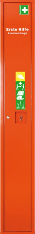 Sanitäts-Stehschrank Ausführung: • Eintürig • Sicherheits-Zylinderschloss mit zwei Schlüsseln • Notschlüsselfach in Türmitte • Umlaufende Dichtung Material: • Feinblech Inhalt: • Krankentrage (1 x klappbar) • SÖHNGEN® Rettungssitz • SÖHNGEN® Rettungstuch • Erste-Hilfe-Koffer Quick-CD Norm nach DIN 13 157 • Zwei Orion-Reflex-Allzweck-Schutzdecken • Taschenlampe