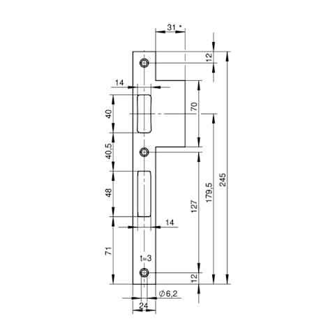 Maß 22 x 3 x 245 mm