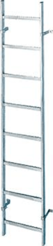 Schachtleiter, V4A (1.4571), Außenbreite 440 mm • Material: Edelstahl V4A (Werkstoff 1.4571) • Lichte Weite: 400 mm • Holmgröße: 50 x 20 mm • Lochsprosse: 29 x 29 mm • Maximale Sicherheit: Holme und Sprossen haben eine rutschsichere Auftrittsfläche, frei von scharfen Kanten und Ecken • Geprüfte Sicherheit: nach DIN EN 14396 Hinweis: Anzahl Wandhalter-Sätze für Leitern (1 Satz = 2 Stück), 4–9 Sprossen: 2 Sätze , 10–15 Sprossen: 3 Sätze , 16–24 Sprossen: 5 Sätze.
