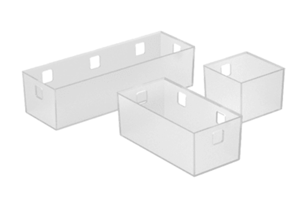 • Dreiteiliges Schalenset für System Banio• KunststoffSet besteht aus:• 1 Schale 84 x 84 x 65 mm• 1 Schale 84 x 168 x 65 mm• 1 Schale 84 x 252 x 65 mm
