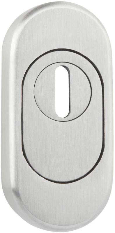 Schieberosette 2079 KSV oval, PZ Höhe: 16 mm mit massiver Edelstahl Unterplatte, mit Zylinderabdeckung federnd gelagert, für Zylinderüberstände 11-18 mm, Oberfl. 61 (Edelstahl poliert)