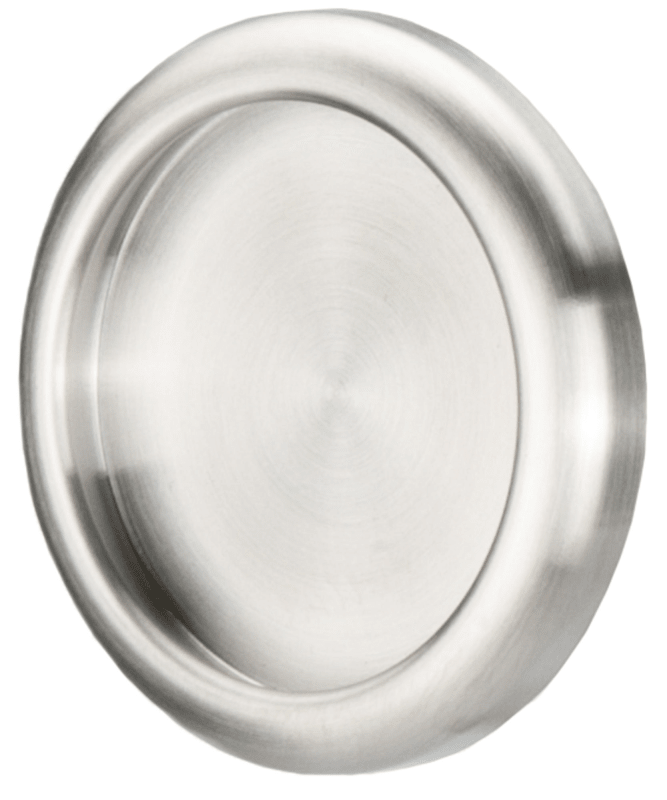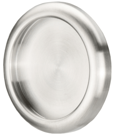 Schiebetür-Griffmuschel 6406 geschlossen, Plan aufliegend auf dem Glas, Glasbohrung 13 mm / mit M6 x 30 Gewindestift, Außendurchmesser 65 mm, Oberfl. 60 (Edelstahl matt)