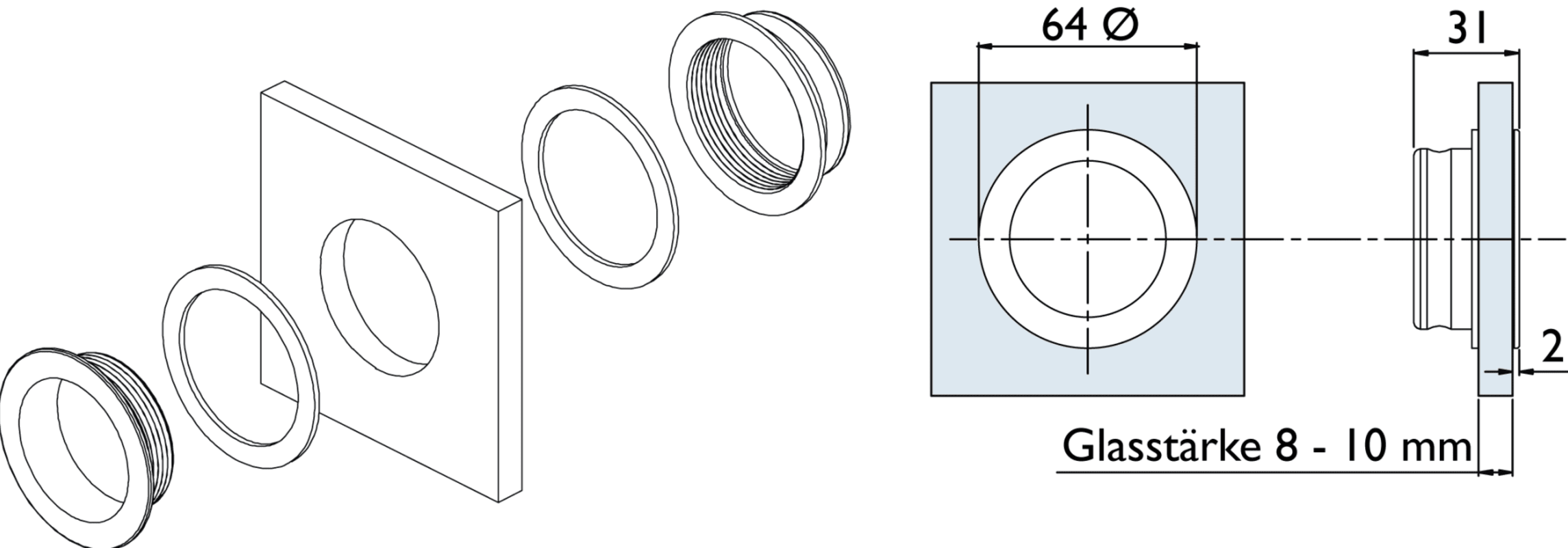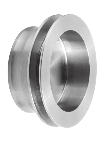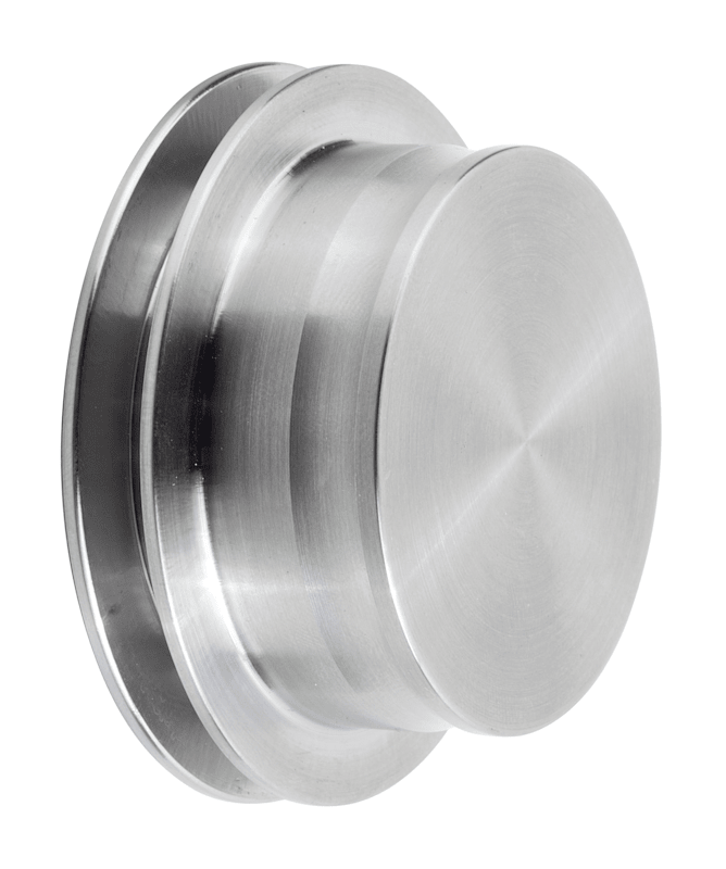 Schiebetür-Griffmuschel 6407 geschlossen, für 8 - 12 mm Glasstärke, Glasbohrung 50 mm, Muschel / Knopfkombination, Oberfl. 20 (Edelstahlfarben)