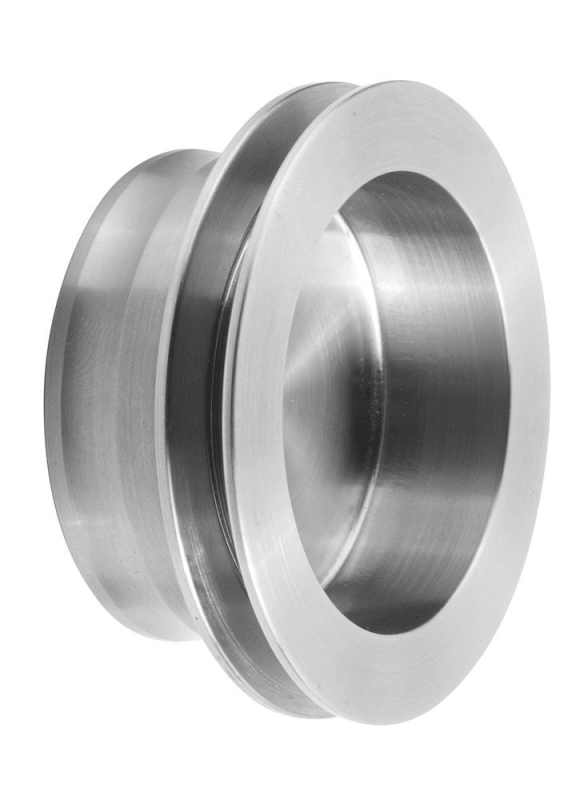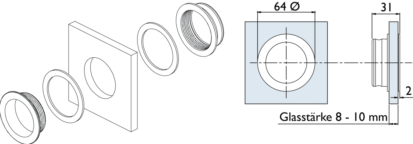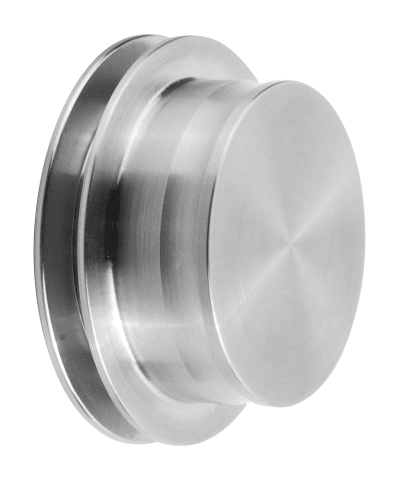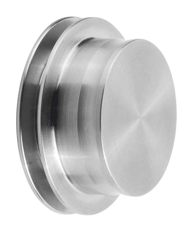 Schiebetür-Griffmuschel 6407 geschlossen, für 8 - 12 mm Glasstärke, Glasbohrung 50 mm, Muschel / Knopfkombination, Oberfl. F1 (Silberfarben eloxiert)