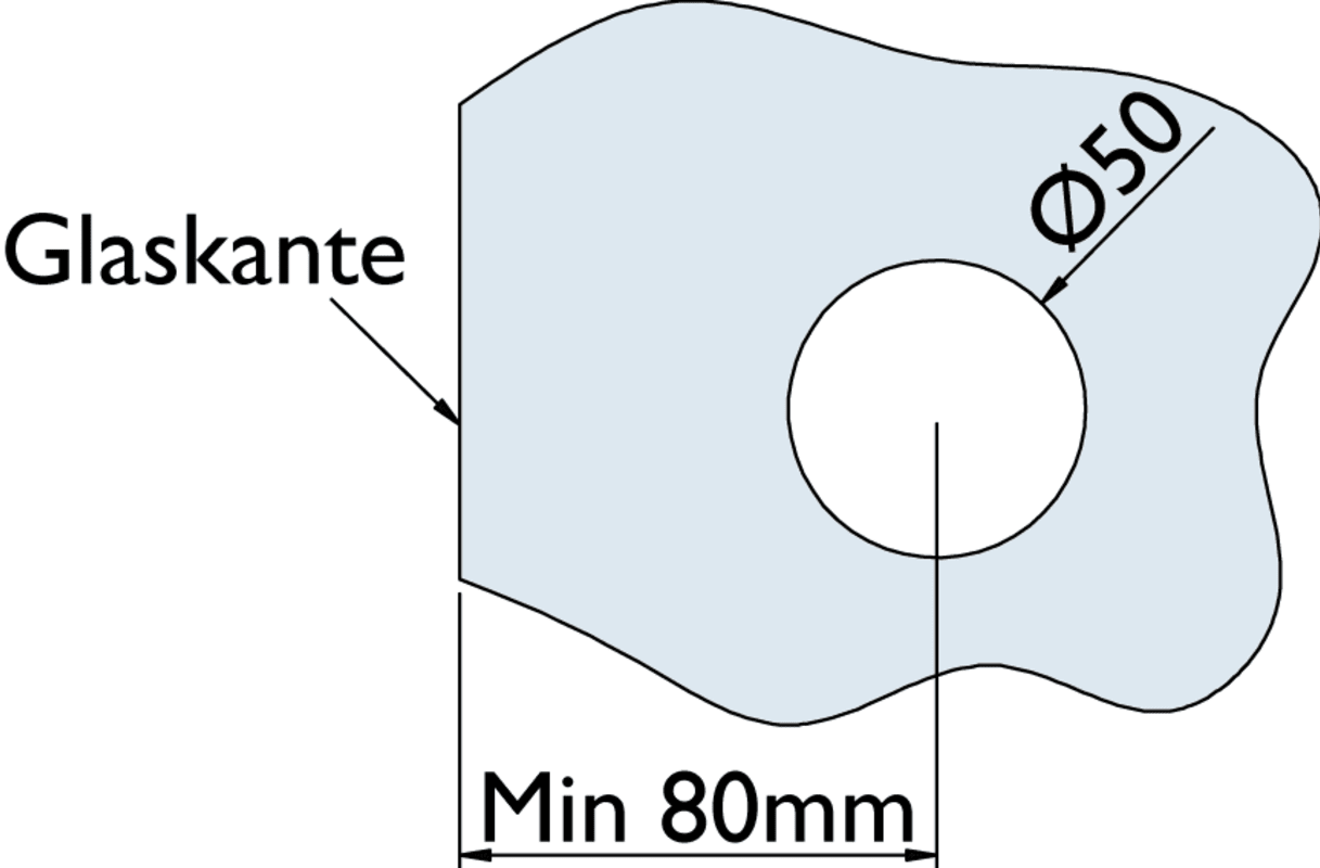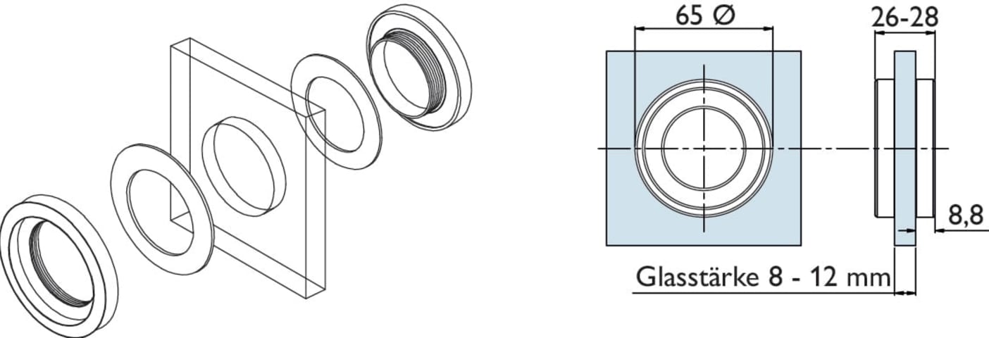 Schiebetür-Griffmuschel 6401 offen, für 8 - 10 mm Glasstärke, Glasbohrung 50 mm, Außendurchmesser 65 mm, Oberfl. 60 (Edelstahl matt)