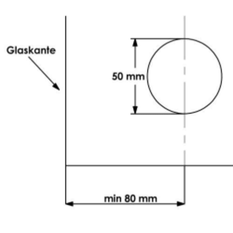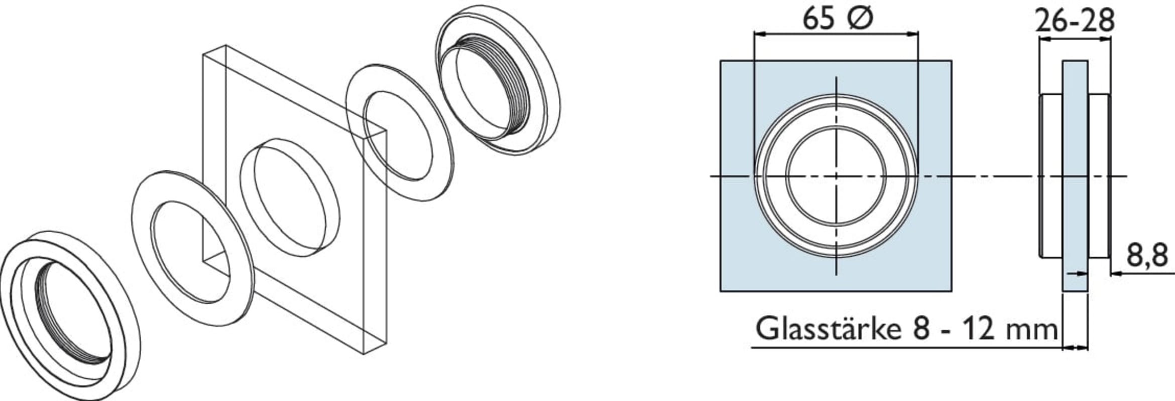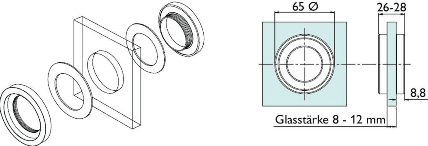Schiebetür-Griffmuschel 6401 offen, für 8 - 10 mm Glasstärke, Glasbohrung 50 mm, Außendurchmesser 65 mm, Oberfl. F1 (Silberfarben eloxiert)