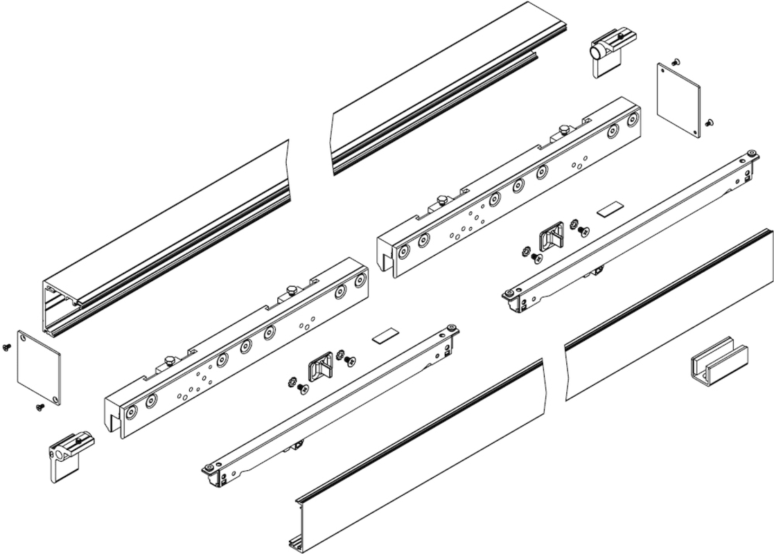 Schiebetür-Klemmbeschlag 9172 für Ganzglastüren, für Wand- oder Deckenmontage, Laufschiene 2000 mm, inkl. Abdeckprofil, Tragkr. 120 kg, Dämpfer verst., 2 SAFE-Laufwagen, 2 Endkappen, mit Selbsteinzug,