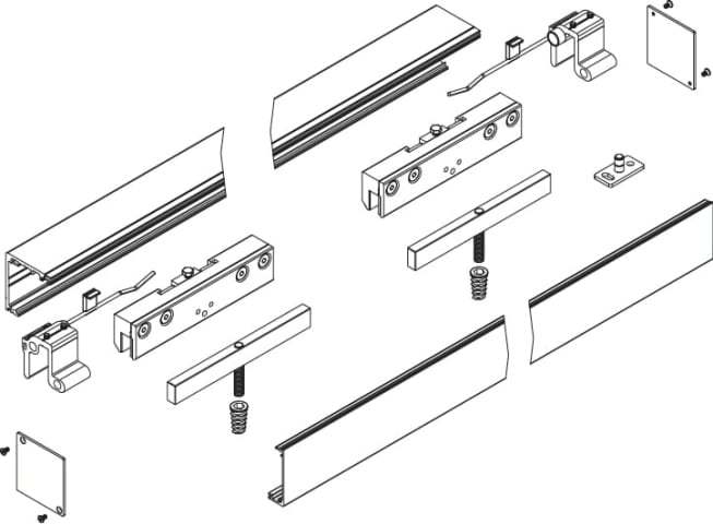 Schiebetür-Klemmbeschlag 9175 für Holztüren, für Wand- oder Deckenmontage, Laufschiene 2000 mm, inkl. Abdeckprofil, Tragkraft 80 kg pro Garnitur, 2 Laufwagen, 2 Stopper, 2 Endkappen, 1 Bodenf., Oberfl