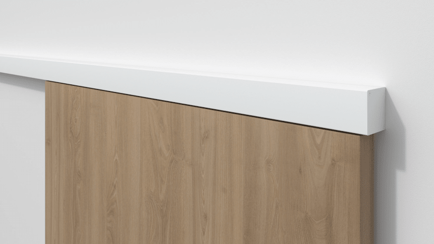Schiebetür-Klemmbeschlag 9175 für Holztüren, für Wand- oder Deckenmontage, Laufschiene 2400 mm, inkl. Abdeckprofil, Tragkraft 80 kg pro Garnitur, 2 Laufwagen, 2 Stopper, 2 Endkappen, 1 Bodenf., Oberfl. 41 (RAL 9016 pulverbeschichtet)