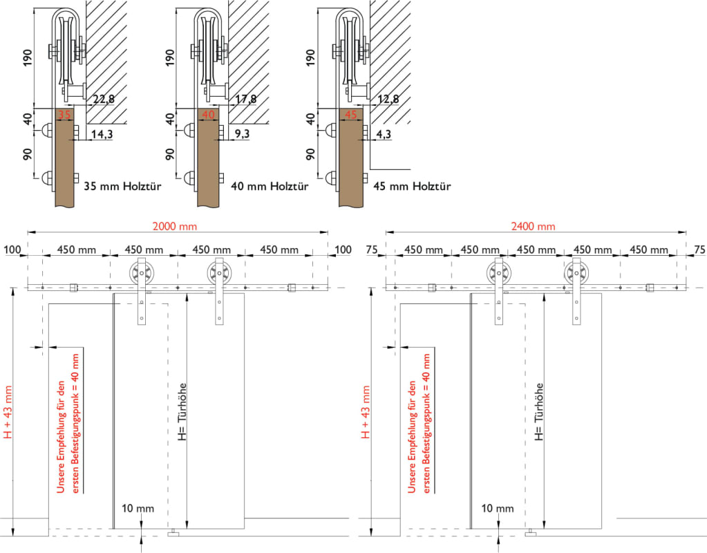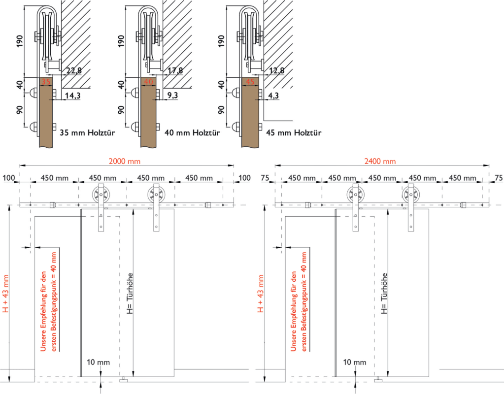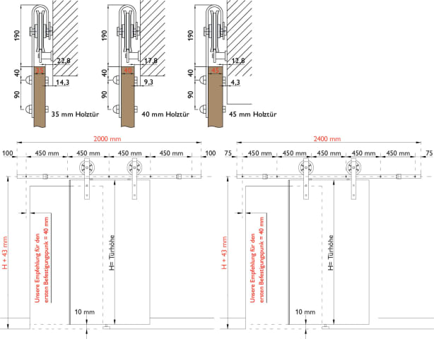 Schiebetür-Laufwagen CORVARA für Holztüren, mit Befestigungsschrauben, zur sichtbaren Verschraubung an Holztüren, Oberfl. 74 (Classic Black, ähnl. RAL 9005)
