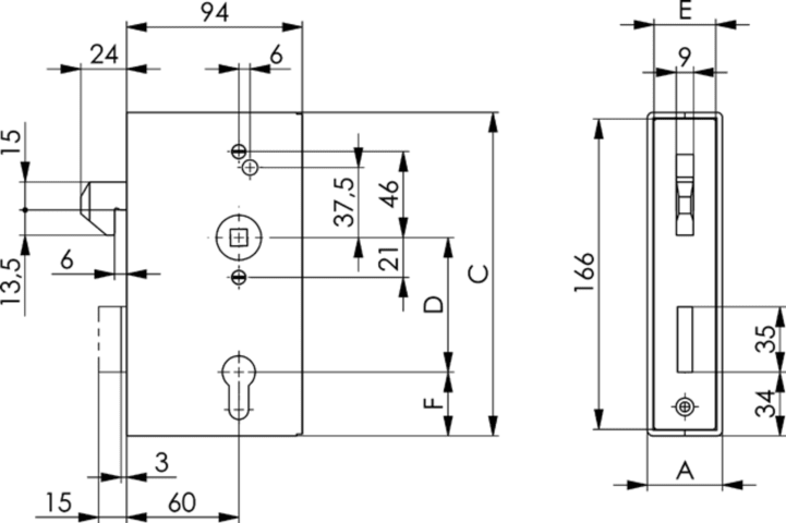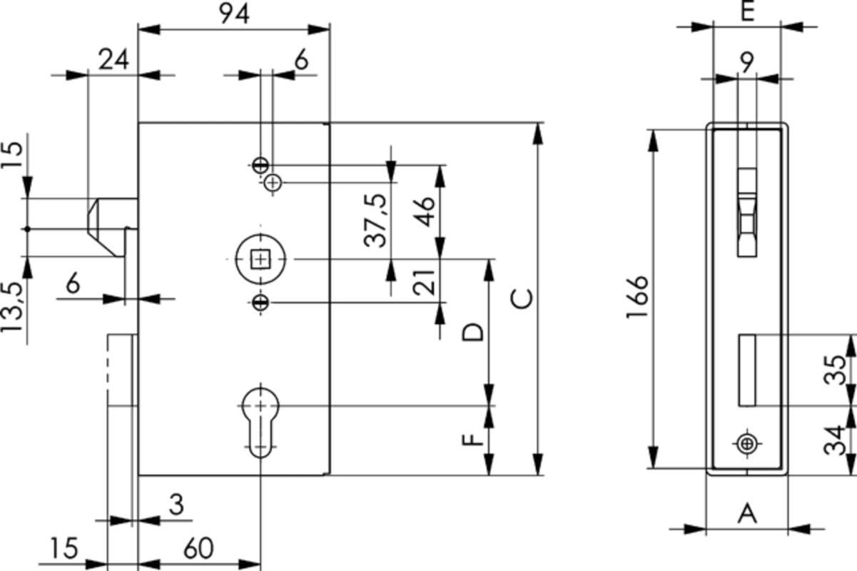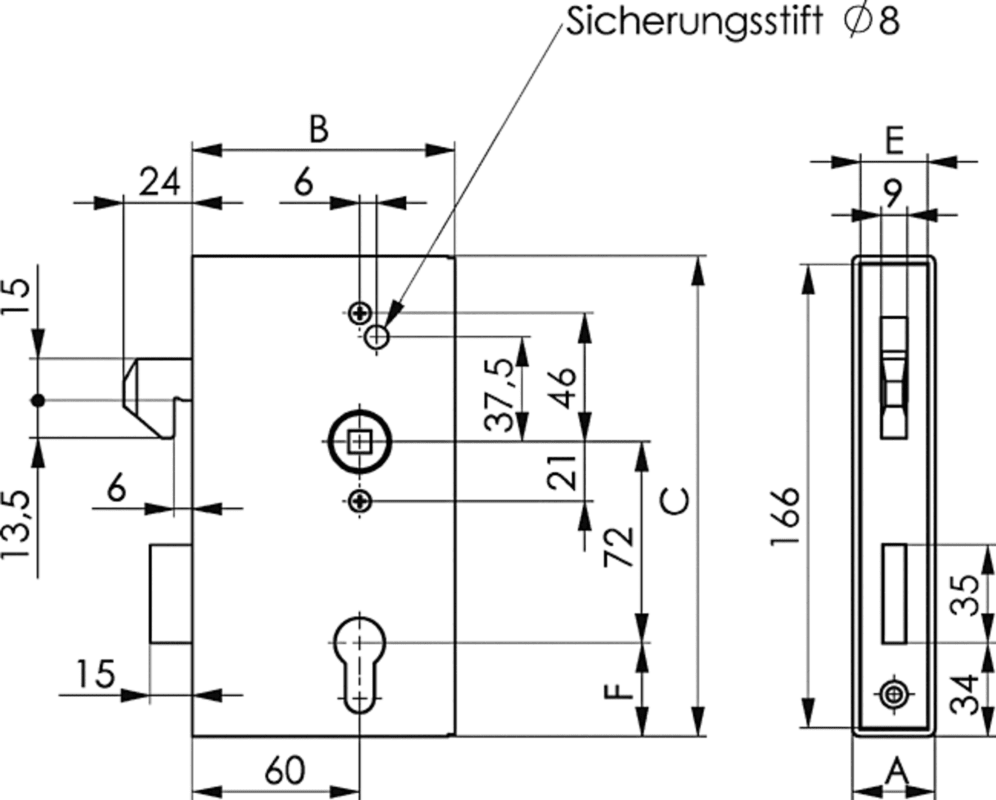 Wahlweise vorgerichtet für Profilzylinder (PZ), Schweizer Rundzylinder (RZ) oder für Buntbart-Nachrüstsatz