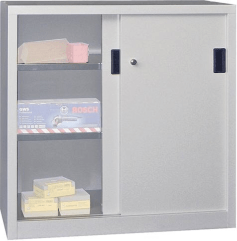 SCHIEBETÜRENSCHRANK 1000X500X1000MM RAL 7035 2 BÖDEN GEPULVERT 30300-100-501-735