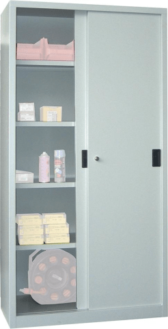 Schiebetürenschrank, Breite 1000 mm, mit Vollblechtüren, Böden gepulvert