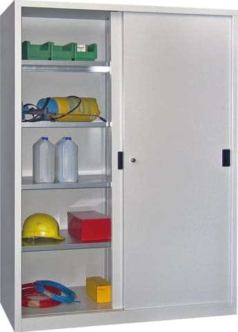 Meesenburg Artikelbezeichnung: SCHIEBETÜRENSCHRANK 1500X400X1950MM RAL 7035 8 BÖDEN VERZINKT 30302-150-400