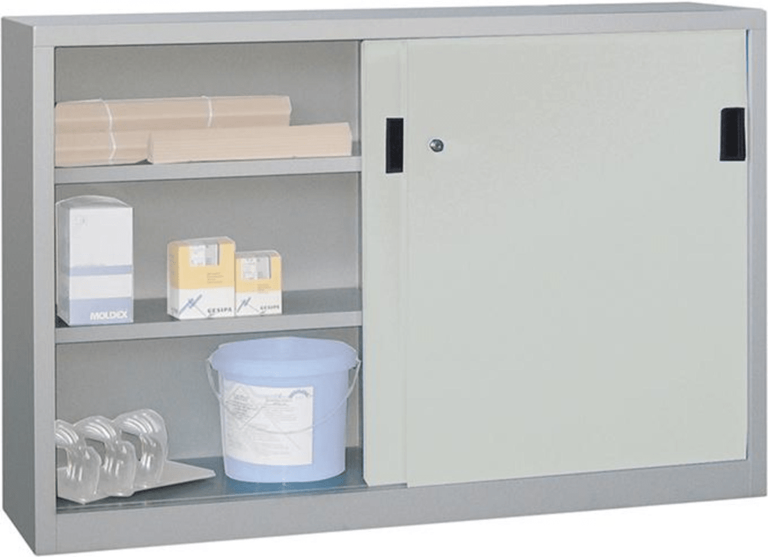SCHIEBETÜRENSCHRANK 2000X400X1000MM RAL 7035 4 BÖDEN GEPULVERT 30300-200-401-735