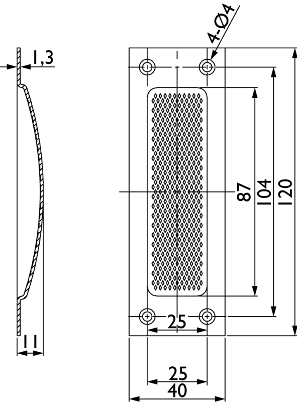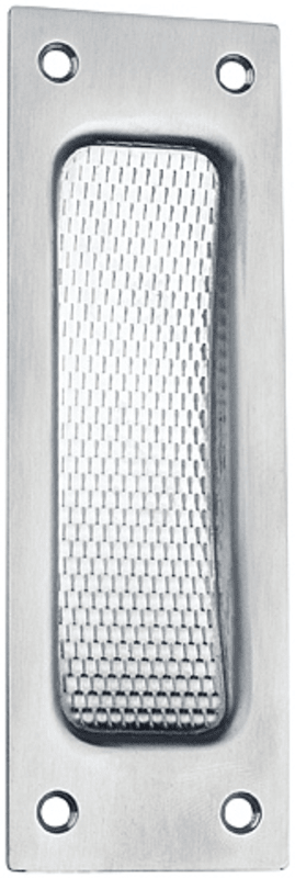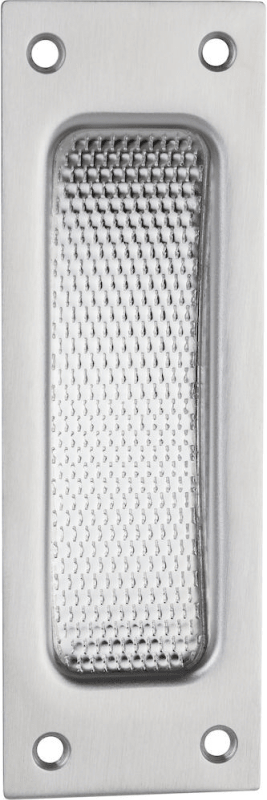 Schiebetürmuschel 3671 OL ohne Lochung, 120 x 40 mm, kantig, mit geriffelter Innenfläche, Fräßmass 93 x 29 x 13 mm, Oberfl. 60 (Edelstahl matt)