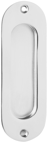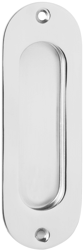 Schiebetürmuschel 3657 OL ungelocht, 120 x 40 mm, abgerundet, mit 2 Anschraublöcher / 2 Holzschrauben 3 x 13 mm, Oberfl. 61 (Edelstahl poliert)